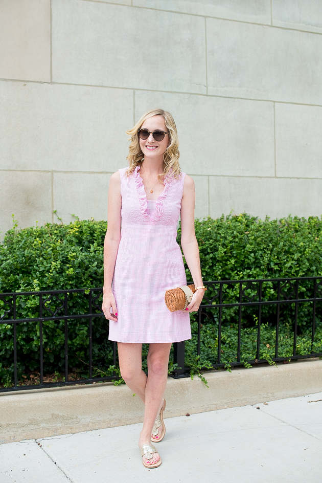 Lilly Pulitzer Dress (Old, here are my current Lilly crushes: one – two – three!) / Vineyard Vines Clutch c/o / Jack Rogers / Helen Ficalora Necklace c/o / Kate Spade Sunglasses (Old, similar here and here), Bracelet (Old, similar here) and Earrings