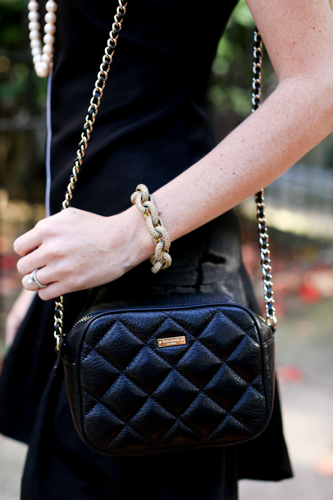Camilyn Beth Dress c/o / Ralph Lauren Pumps (Old, similar here, here, here and here) / Kate Spade Bag (Old, similar here, here, here and here) / J.Crew Bracelet (Also love this one and this one!) / Hazel & Marie Pearl Necklace c/o / Moon and Lola Earrings c/o